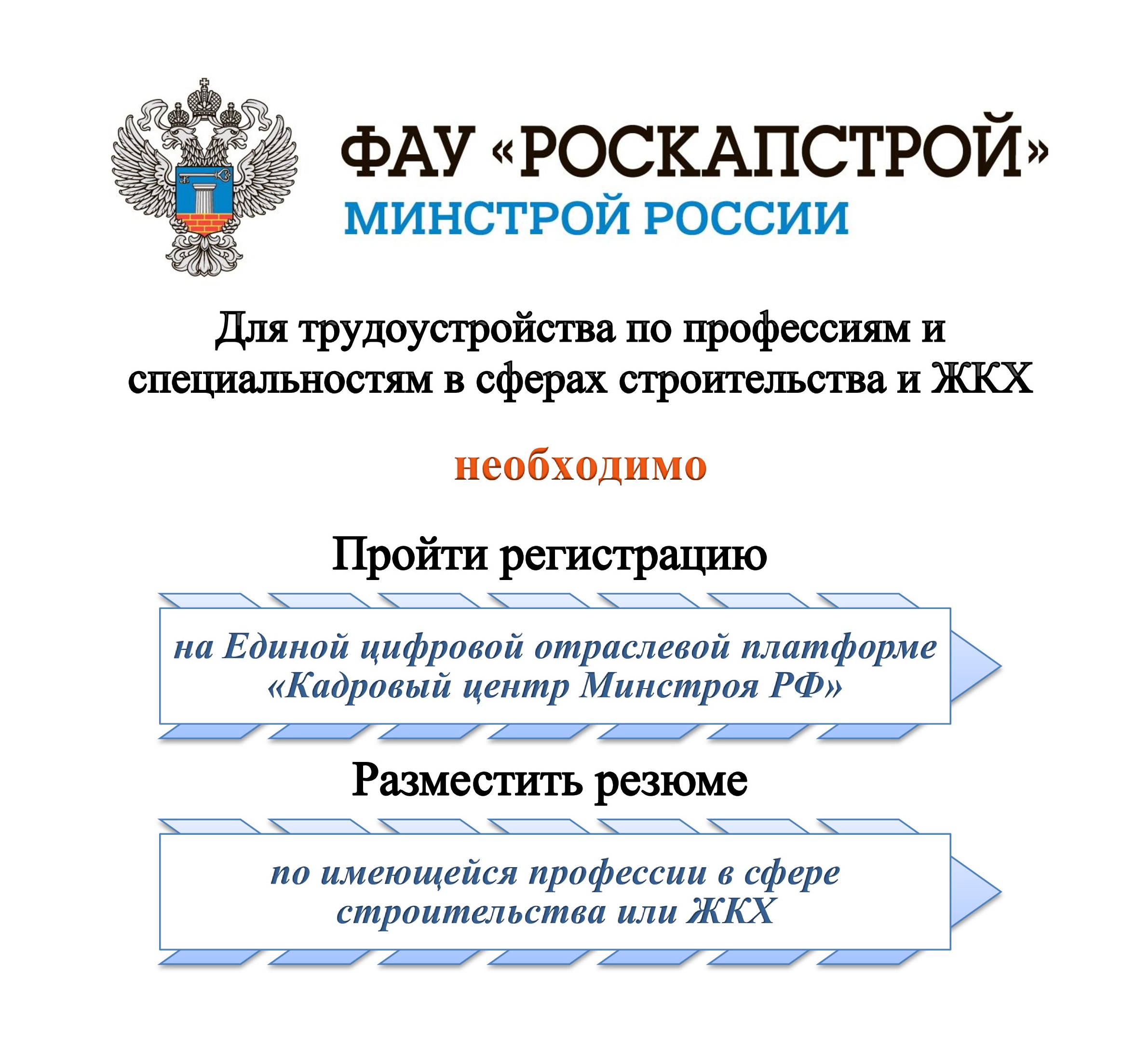 Информация соискателям! Регистрация на Единой отраслевой цифровой платформе "Кадровый центр Минстроя РФ"