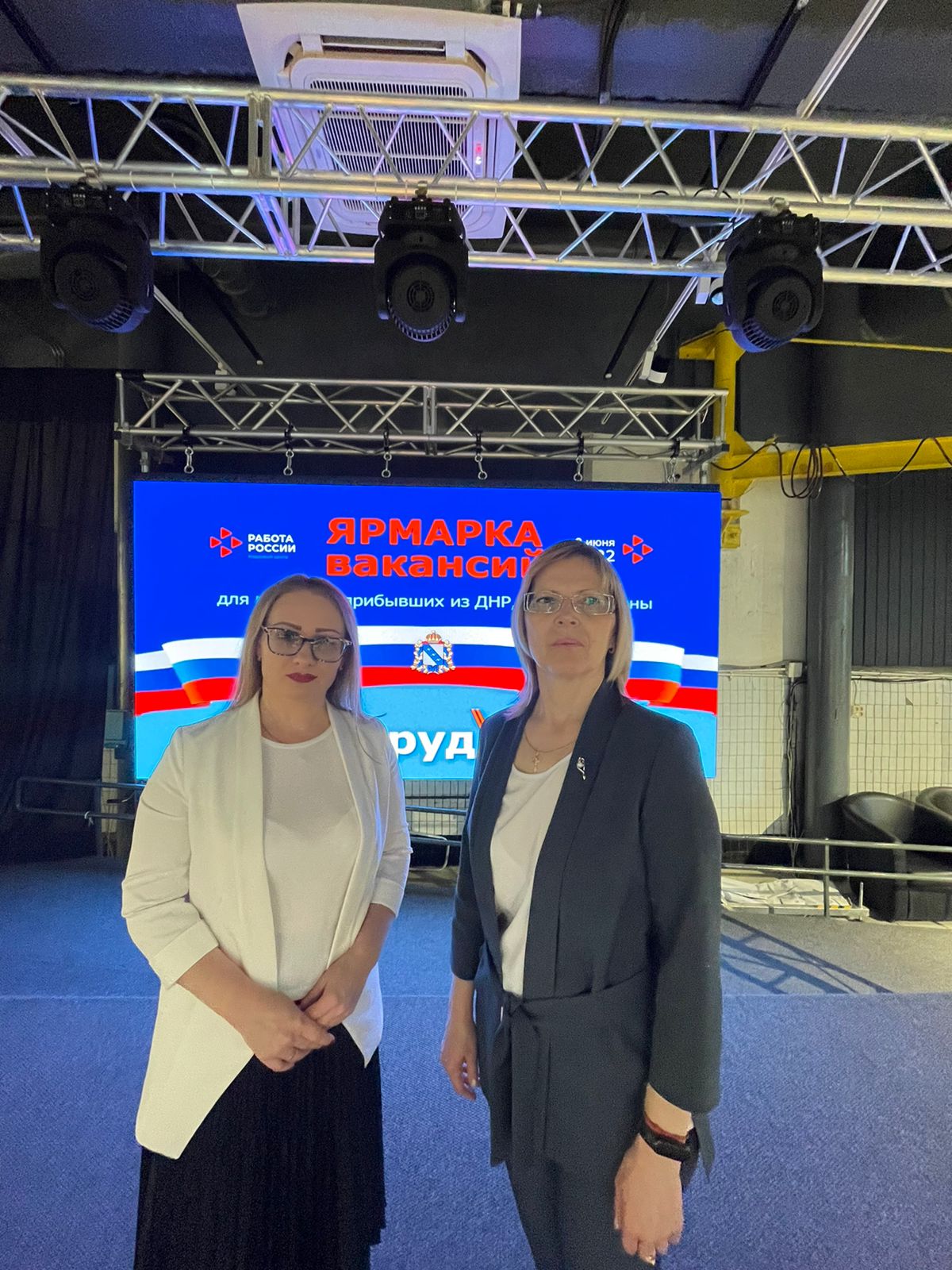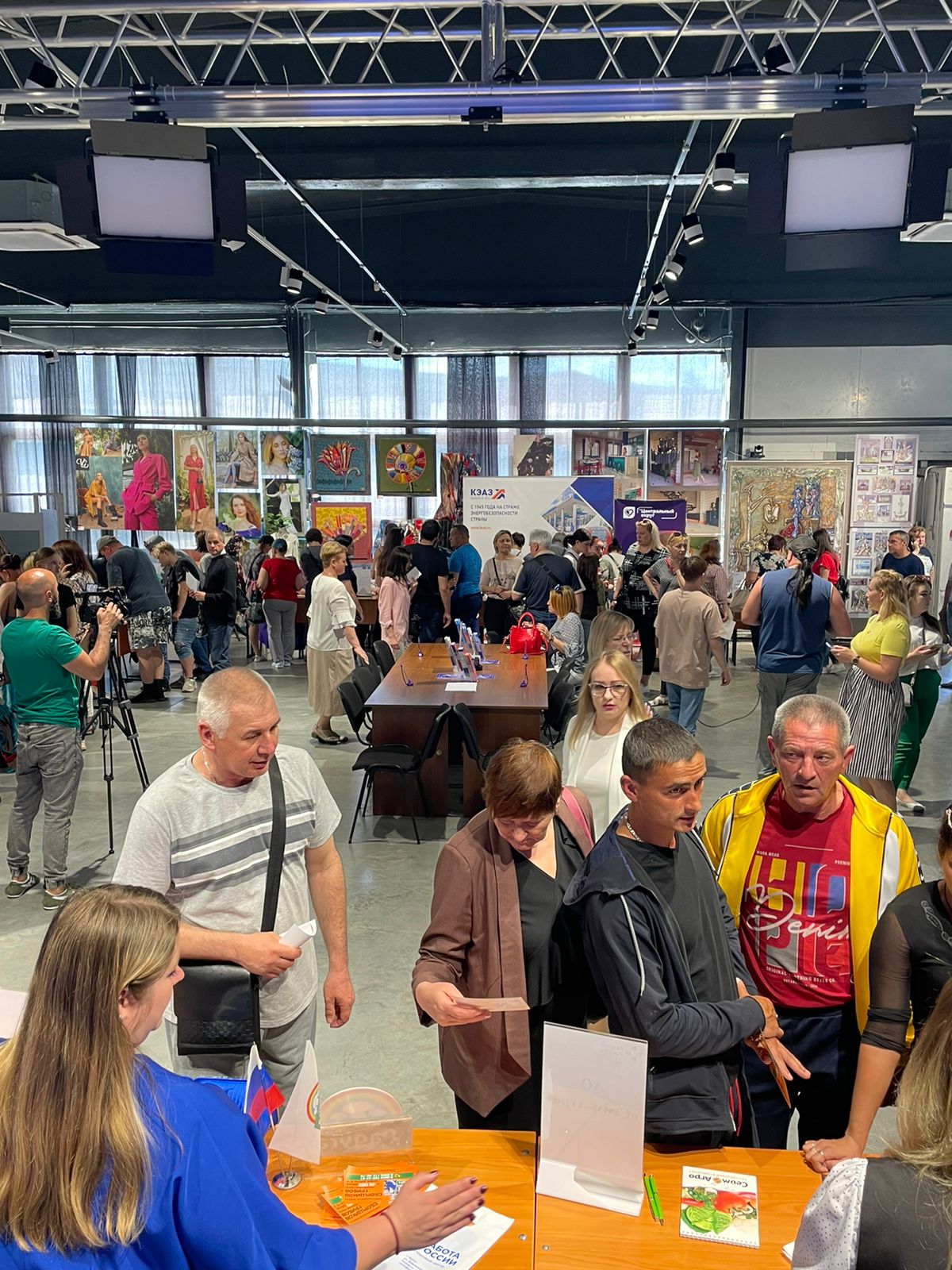 Продолжается трудоустройство граждан, прибывших в Курскую область из ЛНР, ДНР и Украины. На этот раз в городе Курске на территории кластера креативных индустрий «Поток» 08.06.2022 состоялась крупнейшая в регионе ярмарка вакансий для вынужденных переселенцев под лозунгом ZатрудVсем!