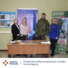Безработным предложили перечень военных специальностей, рассказали об условиях службы, правах и социальных гарантиях военнослужащих, а также вручили буклеты, подготовленные Министерством обороны Российской Федерации.